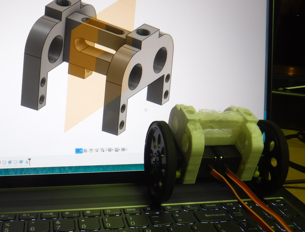 Custom parts hold things together - motors, rotors, wheels, legs, sensors, cameras...