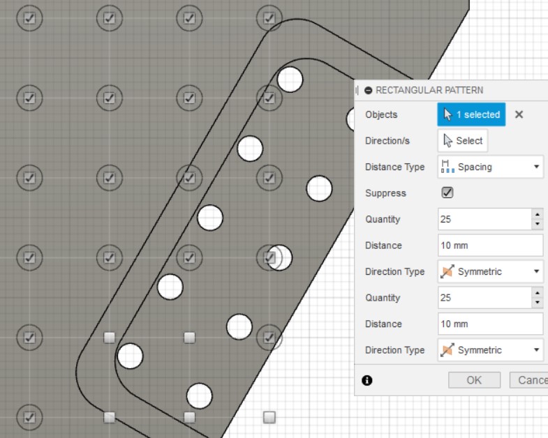 | Extrude 2 | Cut thru all those holes |