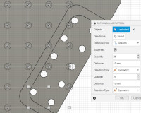 | Sketch 2 | Make one edge pattern, a 3.2mm hole centered 5mm from the edge, rectangular pattern of holes, 2x1 or 2x3 or 2x5. Create a circular pattern of 12 of those edge patterns. |
