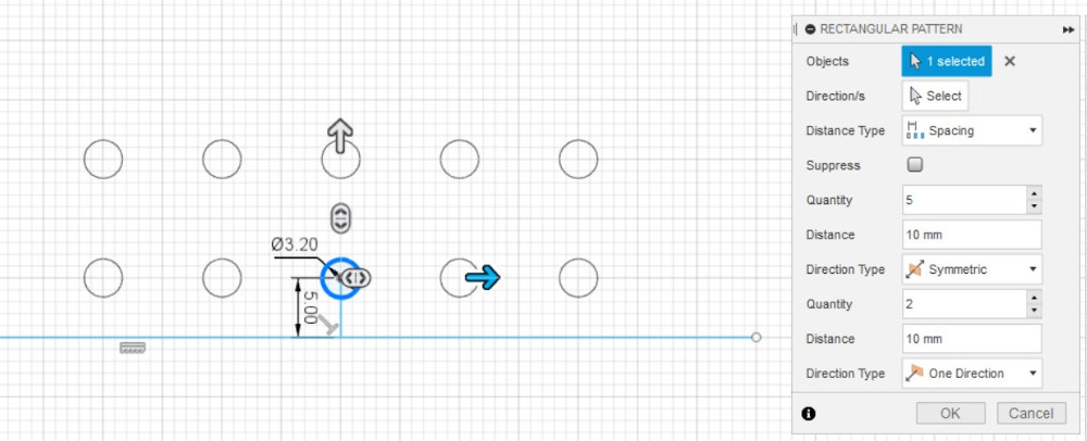 Put a 3.2mm hole in the center, make a rectangular pattern |
